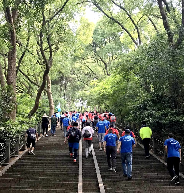 9點20分,大家抵達佘山山腳,相互鼓勵,你追我趕,大步向前,開始登山。大家三五成群,體力充沛者快速猛登,經(jīng)驗豐富者穩(wěn)中巧登。登山除了靠體力,還要有毅力,一些老同志根本不比年輕人遜色。